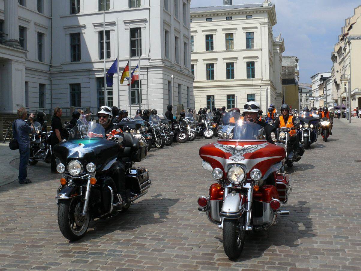 Bereits am Freitagabend verbreitete die Band "Little Country Gantleman eine tolle Stimmung. Das ging bis in die späten Abendstunden. Am Sonnabend war dann 11:00 Uhr Start zur großen Bikerparade durch den Landkreis bis in die Landeshauptstadt Schwerin und das direkt durch die City entlang des Pfaffenteichs, der Mecklenburgstraße und Schlossstraße.Ein großes Medieninteresse zeigte u.a. der NDR für die Regionalnachrichten, aber auch viel Presse, die sich diese Gelegenheit ebenfalls nicht entgehen ließ. Unzählige Schweriner und Besucher der Landeshauptstadt waren begeistert von dem einmaligen Anblick so vieler chromglänzender Bikes und dem einmaligen und unverkennbaren Sound. Am Nachmittag und am Abend spielten dann Bands aus der Region. Im nächsten Jahr, liebe Bikerfreunde, werden am Freitag und Sonnabend zwei sehr bekannte Spitzenbands Euch wieder einheizen.
