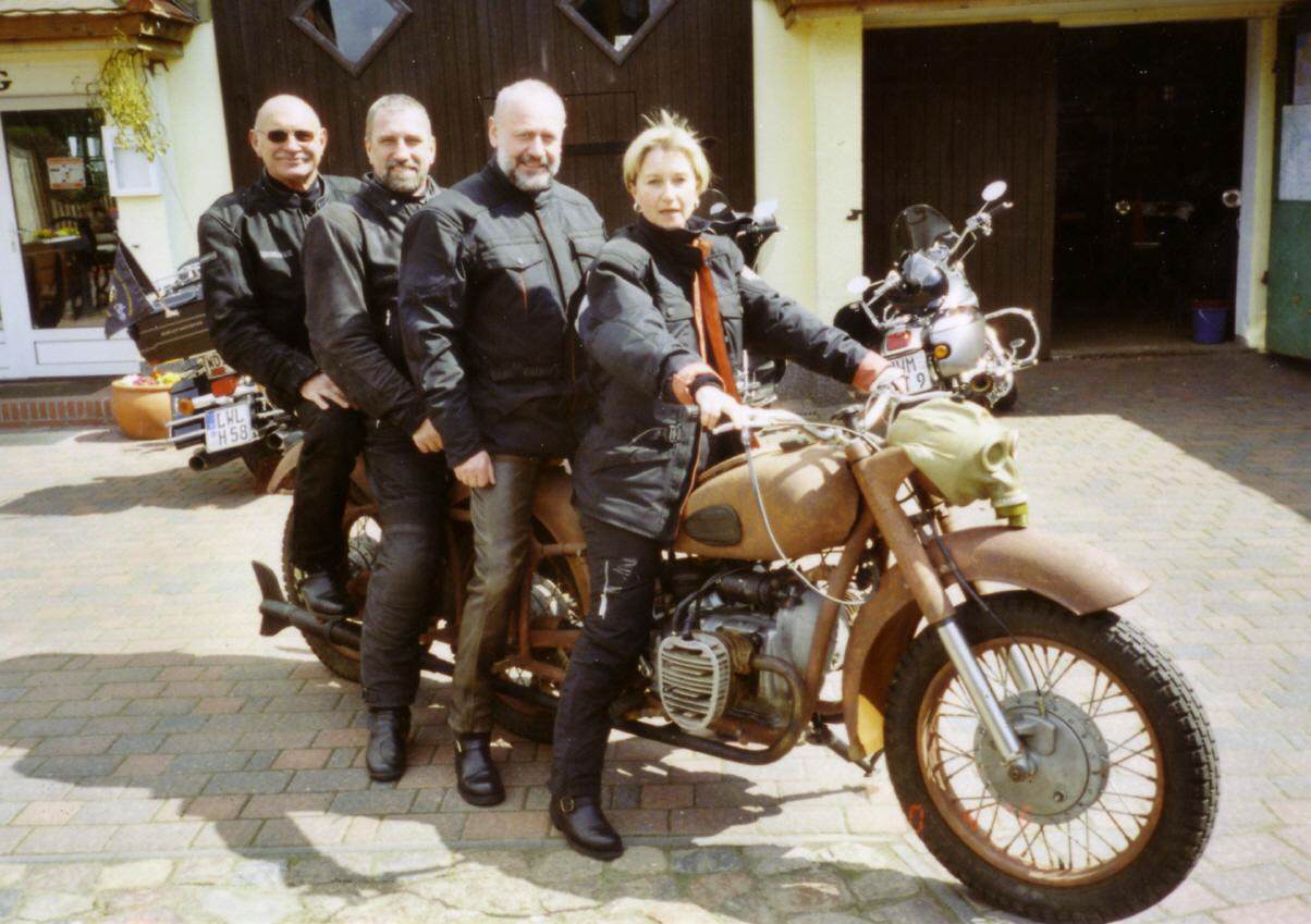 Auf der Suche nach interessanten Tourzielen erhielten wir den Tipp: „ fahrt mal zu „Specki“ nach Zepkow, der betreibt dort die Gaststätte -Zur alten Scheune- und ist selbst begeisterter Motorradfahrer“.Da wir bereits am 30. April eine Tour an die Müritz geplant hatten, entschlossen wir uns Specki in Zepkow aufzusuchen. Dort trafen wir auch zu Mittag ein und wurden freundlich von den Wirtsleuten Schacht empfangen und köstlich bewirtet.