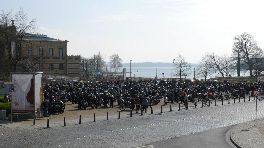 Am 17. April luden wir nun schon zum 10. Mal zum traditionellen gemeinsamen Saisonstart ein. Über 660 Biker versammelten sich bei herrlichem Sonnensachein in Schwerin auf dem Alten Garten. Aus ganz Mecklenburg - Vorpommern, Hamburg, Schleswig - Holstein, Niedersachsen, Brandenburg und Sachsen - Anhalt waren Bikerinnen und Biker gekommen um bei diesem Spektakel dabei zu sein. Schon bei der Ankunft gab es viele Umarmungen und herzliche Begrüßungen.