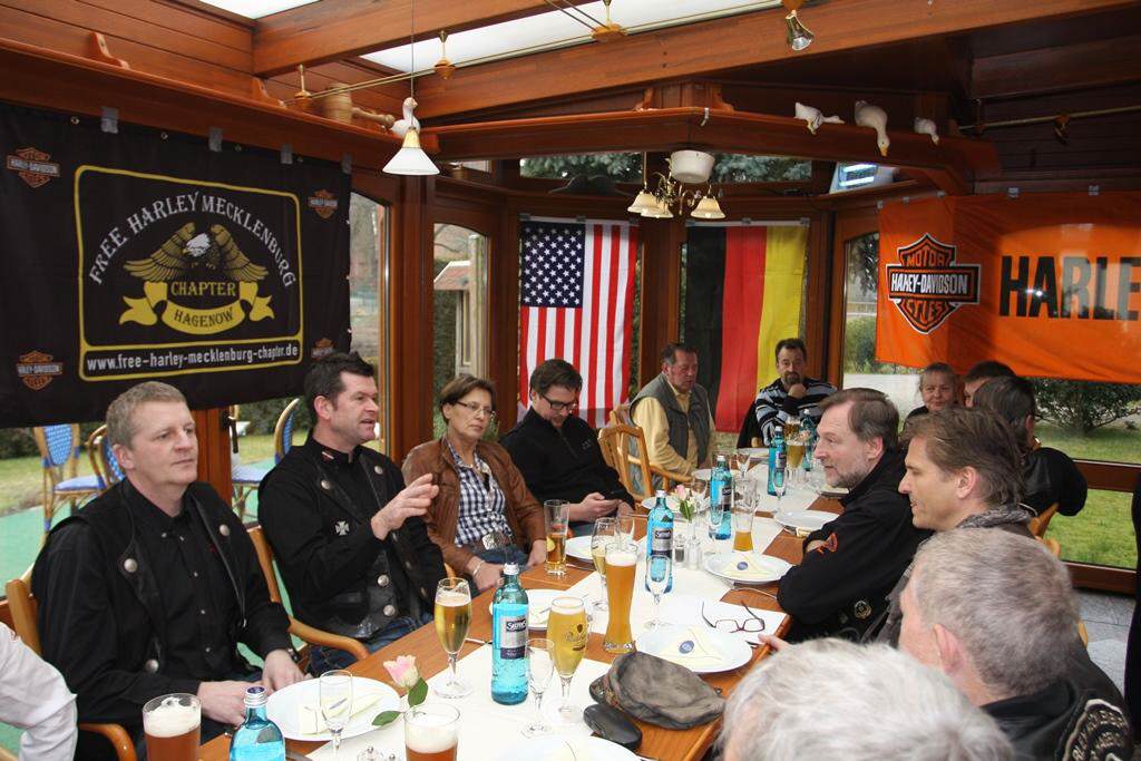 Nach einem deftigen Essen, wurden dann alle anstehenden Anlässe gebührend gefeiert und mit dem einen oder anderen Gläschen begossen. Auch das gehört mit dazu. Wie im vergangenen Jahr, hatte Hans es nicht versäumt, einen kleinen „Kulturbeitrag“ mit einzubauen. Der Unterhaltungskünstler trieb uns mit seinen Meckelbörger Schnacks die Tränen in die Augen, so dass wir alle mit einem Lächeln die Perle verließen.